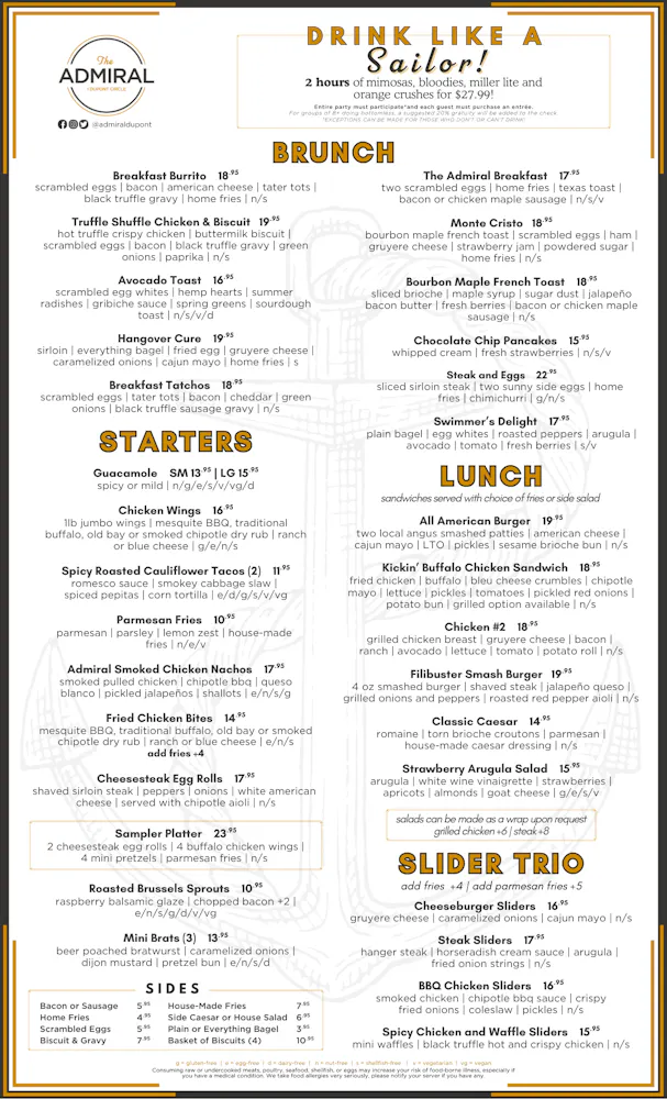 Served Saturday & Sunday 11am-4pm Bottomless brunch drinks are $27.99, which include 2 hours of orange crushes, mimosas, miller lite and bloody marys. A food item must be purchased to participate in bottomless brunch. All guests at the table must participate in the bottomless option to ensure drinks are not shared. It's a marathon, not a sprint. Please drink responsibly. Tax and tip not included. For groups of eight or more doing bottomless, a suggested 20% gratuity will be added to the check.Brunch