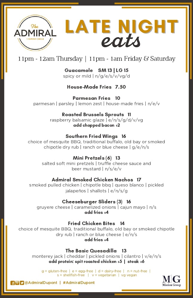 Late night menu is available from 11pm-1am on Friday and Saturday. Drinks and DJ until 3am-