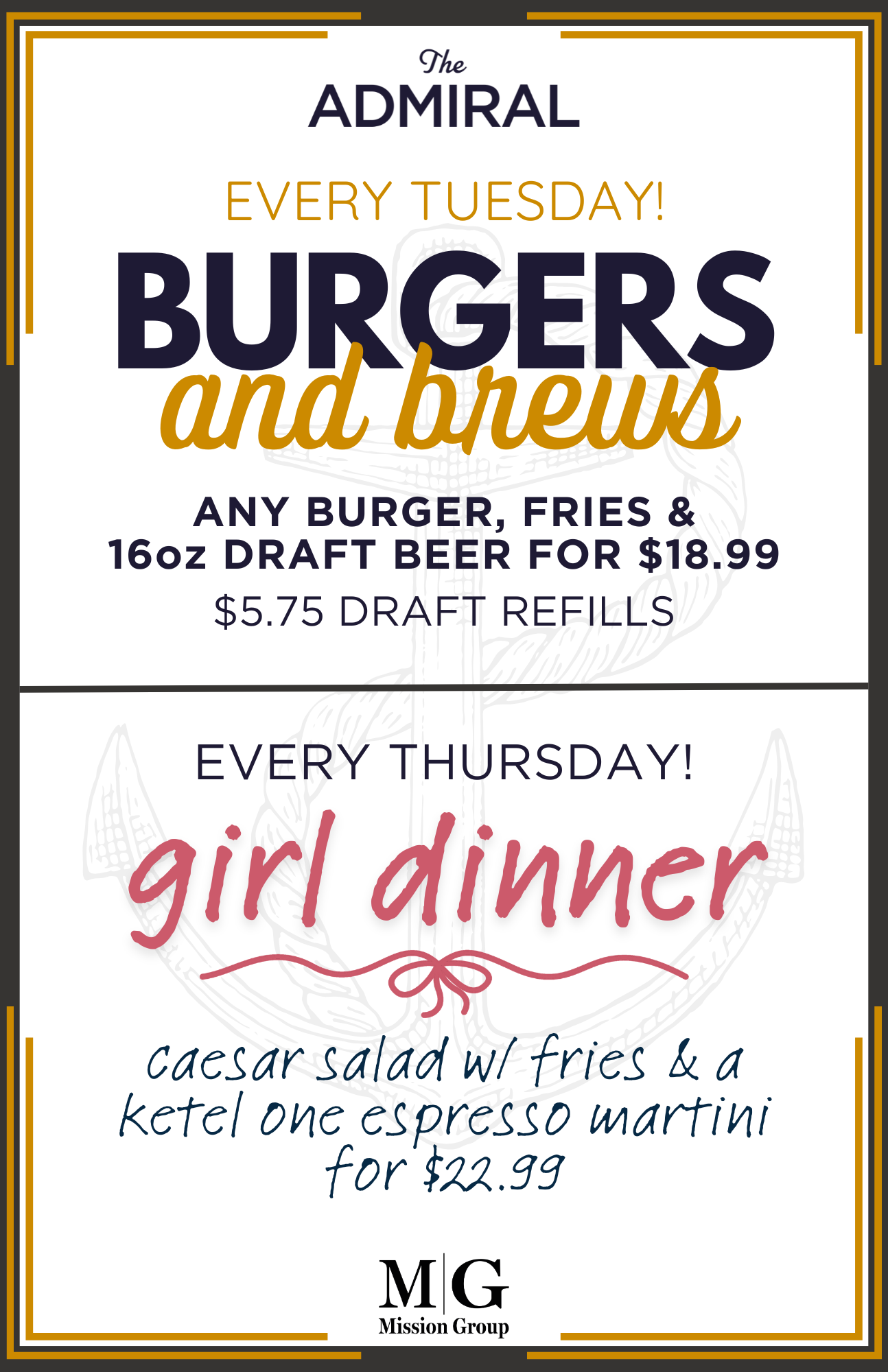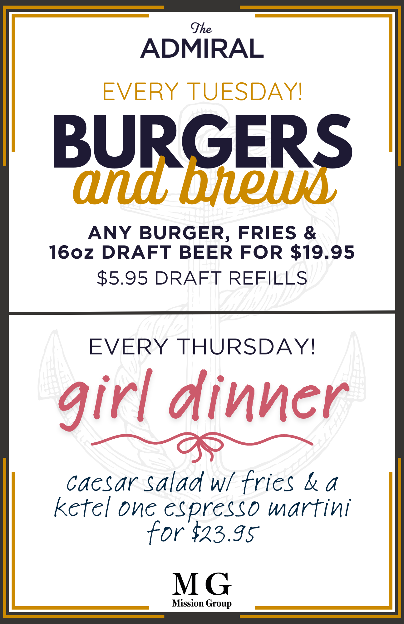 two local angus smashed patties | shaved onions | american cheese | bacon | admiral sauce | n/s